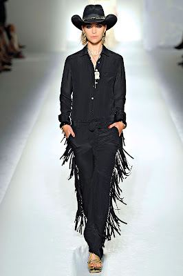 Ok, I have to admit this is a better collection than Pucci and Missoni. At least the theme of matadors and western not taken too literal. In Moschino what we see is Spanish heat meets western.